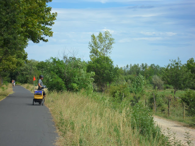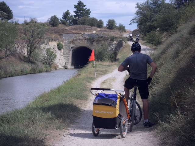 Nous sommes également voyage à vélo pour le plus grand plaisir de tout le monde et je tenais à vous remercier pour cet été car nous avions prévu de faire les chateaux de la Loire sur 10 jours mais face à cette météo impitoyable, j’ai proposé en plan B à mon homme Le canal du midi en me servant de votre topo!! (marseillette, Argeliers etc…) Je lui ai montré votre blog pour finir de le persuader car il n’était pas très motivé (on avait fait le canal latéral de la garonne qui lui était goudronné…) Vu que votre Burley était passée, les notres aussi (on n’a pas de sacoches mais deux Burley!)
